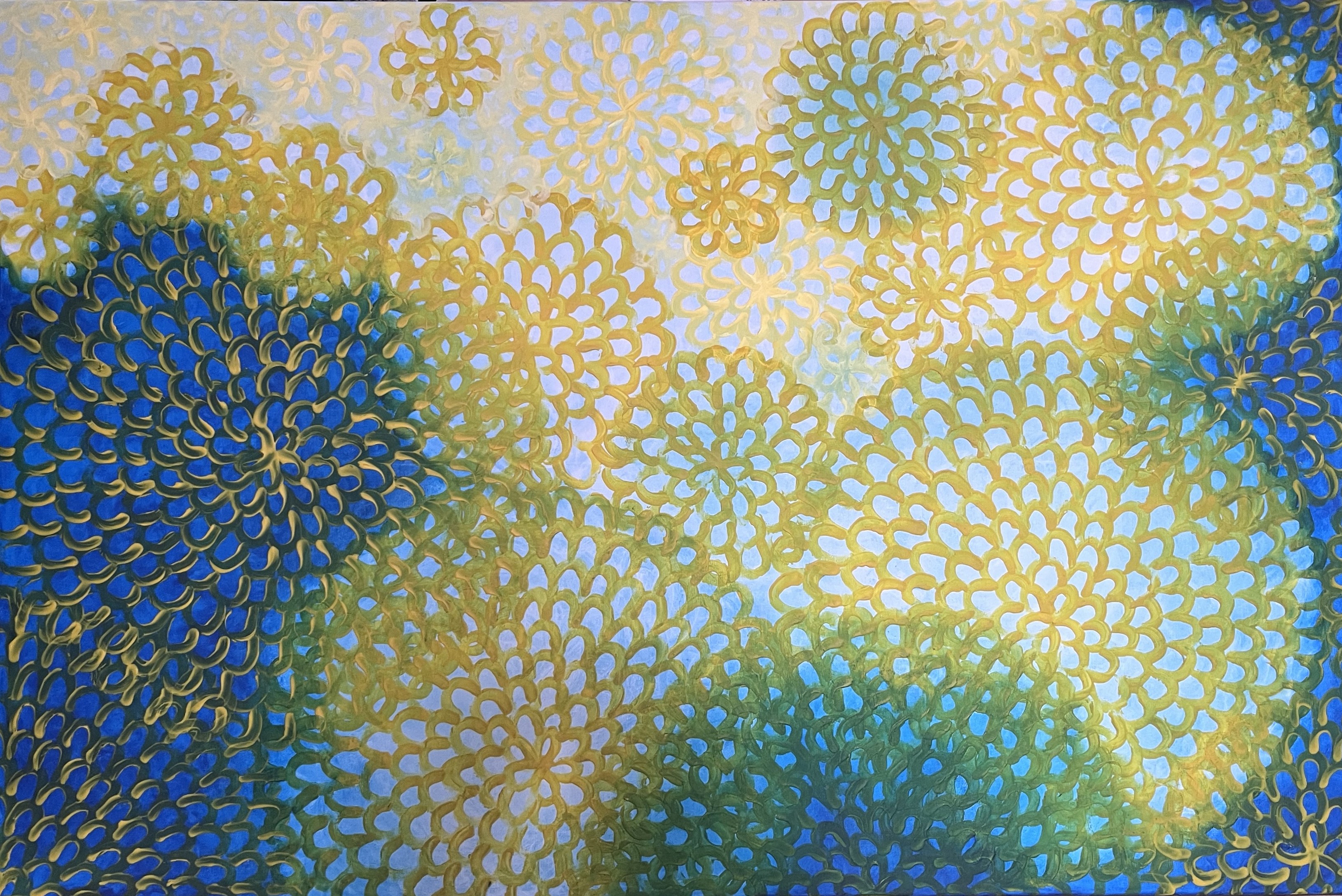 Inspirací mi byly dlouhé zimní večery, kdy jsou po setmění často vidět hvězdy. Studené tóny s jemnými kontrasty působí uklidňujícím dojmem.